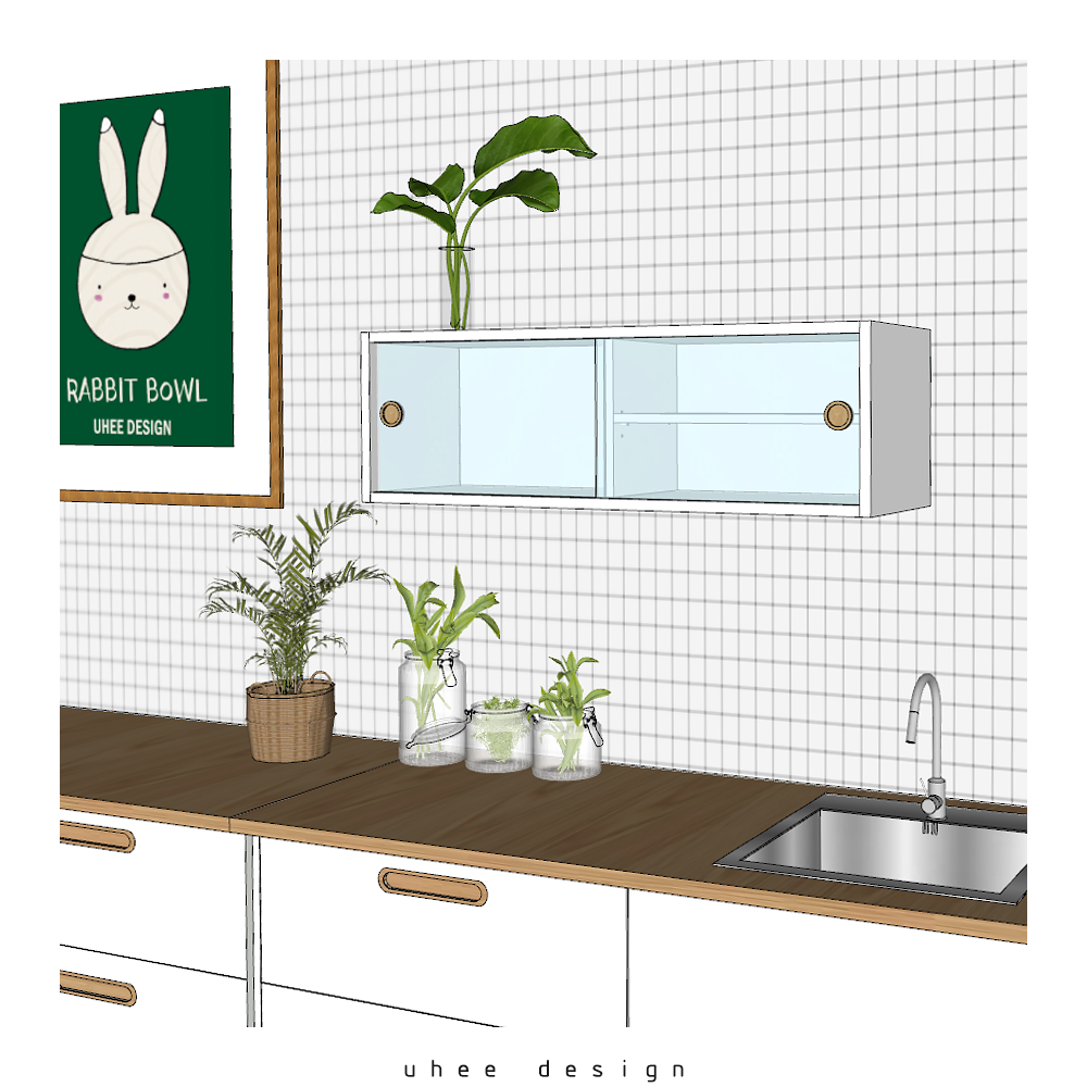 윗 사진의 고객님께서는 그릇장 길이를 늘리고